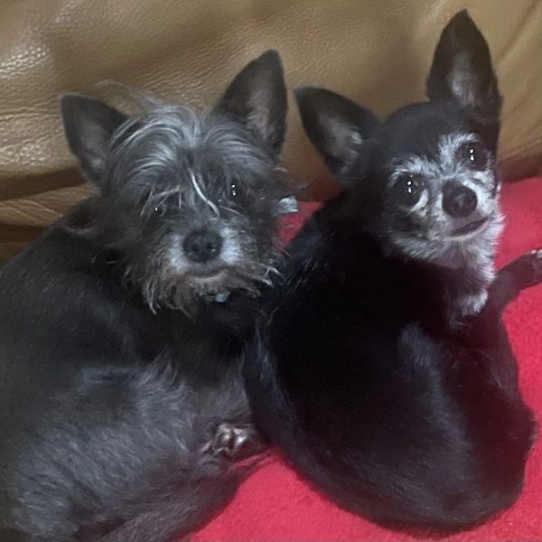 We're the Missy's. Well both our names aren't missy but we respond to anything as long as it's in that high pitched awful tone. We are therapy dogs with our own background of trauma. One of us is missing a leg. We love building trust with people, shaking, whining and kissing you with our terrible breath. We can't wait to meet you.